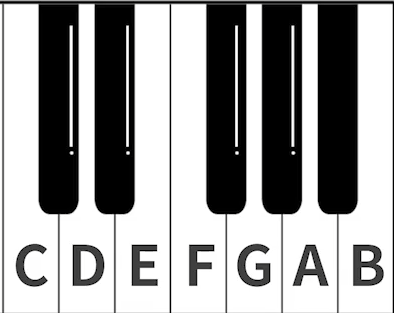 一组键中, 从左往右音名依次为CDEFGAB, 如图 助记: