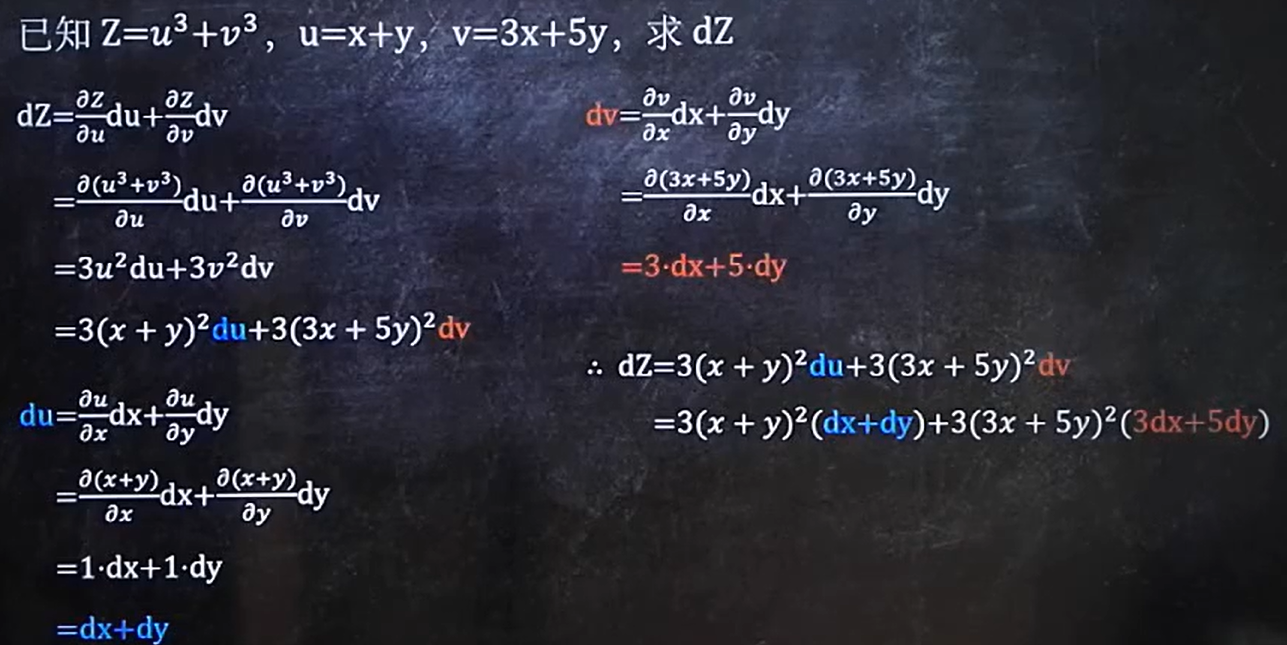 2. 复合函数的全微分: