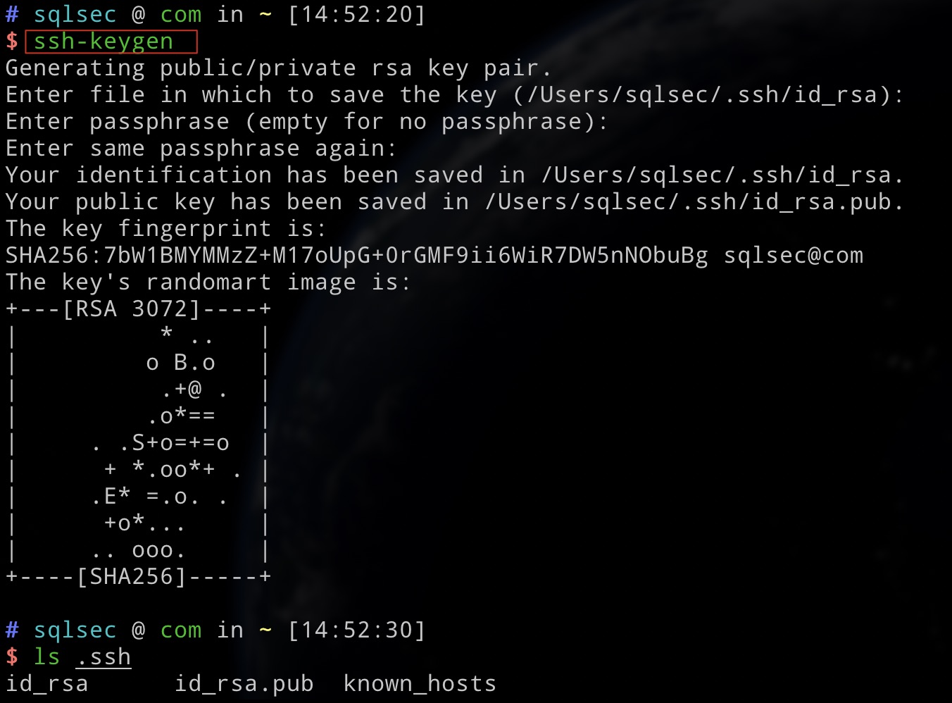 ssh-keyge此时会在~/.ssh目录下生成 3 个文件