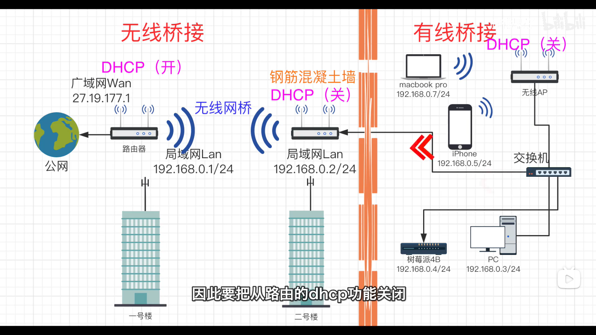 • 有线桥接最简单