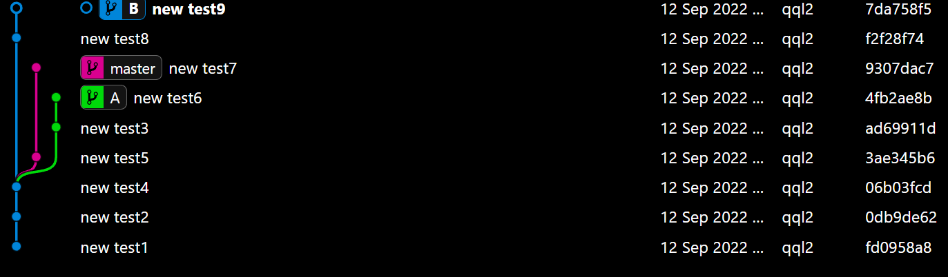 2. A分支rebase到test5提交的情况