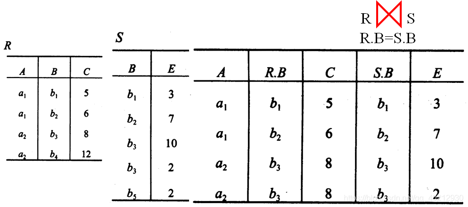 上面的等值连接进行比较的都是B属性, 但还可以进行R.B = S.E等值连接